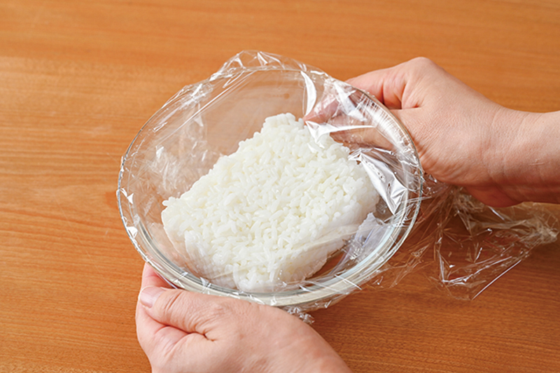 「加熱後ふたを剥がさず1分ほど蒸らすと加熱ムラ防止に。その後ほぐすことで空気に触れ、表面のべたつきが解消される」(秋元さん)