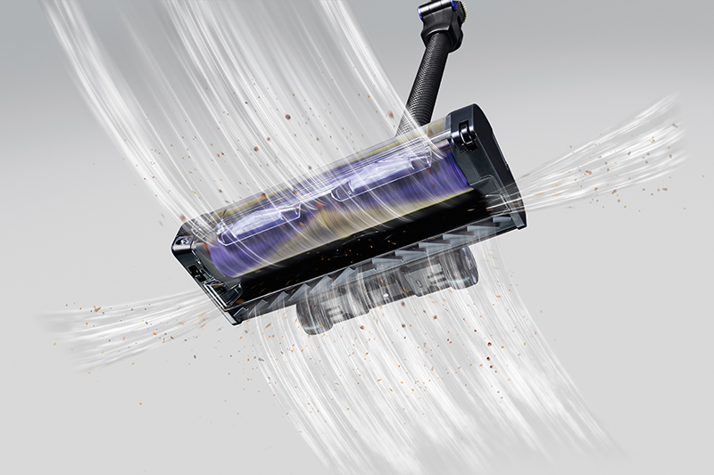 「従来品はラバー製フラップが高速回転しながら床にあたり、音が気になる場合がありました。そこで強度の高いケブラー繊維を配置したブラシロールを採用。床へのアプローチを軽減し、静音性と耐久性を向上させました」