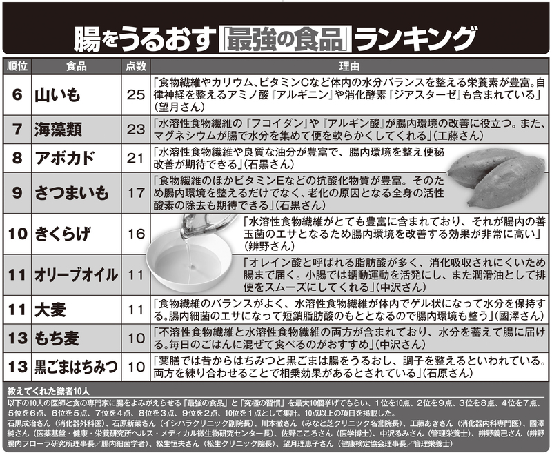 「腸内細菌のエサとなる食物繊維が不足すると、代わりに腸の粘液が腸内細菌のエサとなり、失われてしまう。腸内の水分を保持するためにも、水分を含んでゲル状になる水溶性食物繊維が含まれる食品をしっかり摂るといいでしょう」