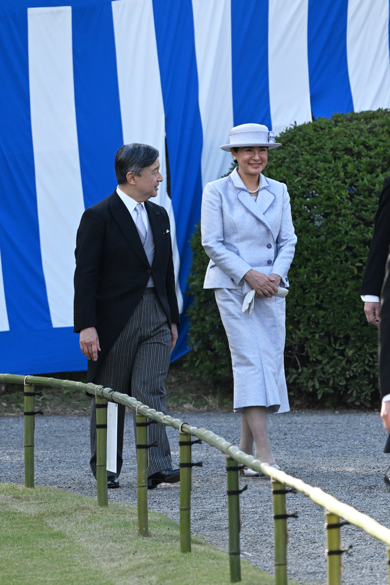 「赤坂御苑にて、秋の園遊会が行われました。当日は爽やかな秋晴れに恵まれ、出席者の皆さんも晴れ晴れとした表情でした。園遊会での女性皇族方の服装は洋装、洋装、和装、和装……というように、2回ずつ交互になっているのですが、今回は1年ぶりの洋装。雅子さまはラベンダー色のスーツ姿で登場されました。愛子さまはワインレッド色のスーツで、出席者の方々と積極的に交流を深められていました」(皇室ジャーナリスト)