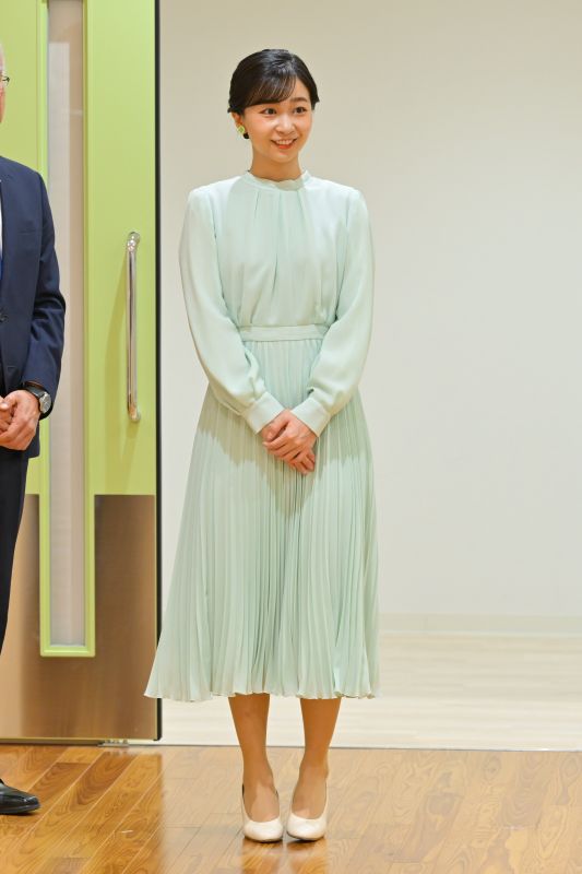 佳子さまがお召しになったものが即日完売する”佳子さま売れ”現象が起きるほど、佳子さまの装いは話題になるが、この日、佳子さまがお召しになったのは、ミントグリーンが爽やかな印象を与えるワンピース。ほんのり透けているような感じがある柔らかい素材で上半身はふんわり、スカート部分は細かいプリーツ(折りひだ)がシャープで華やかな印象を与える。