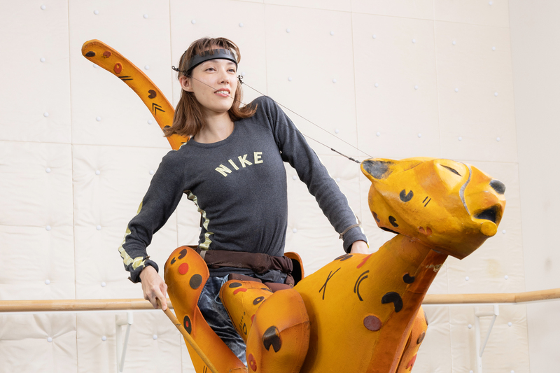 稲葉:それは腰ではなく、むしろ腹筋。全身をしっかり使っているんですよ。首からぐいっといくと首を痛めやすいので固定しつつ、かといってある程度首にテンションをかけないと紐がゆるんで顔がとんでもないところを向いてしまう。首も腕もですが、毎回筋肉痛になっています。全身のマッサージは毎日欠かせないですね。