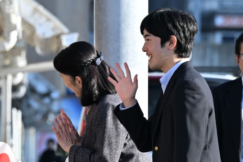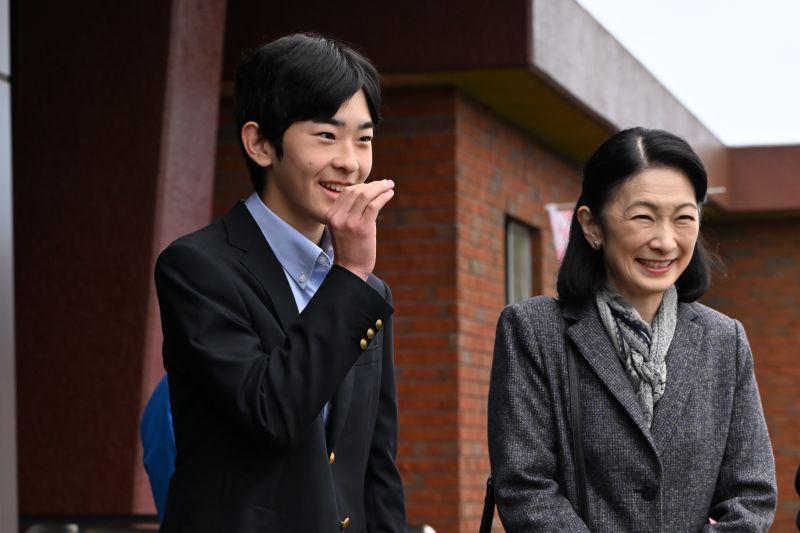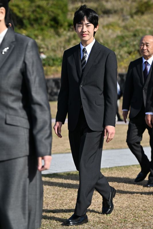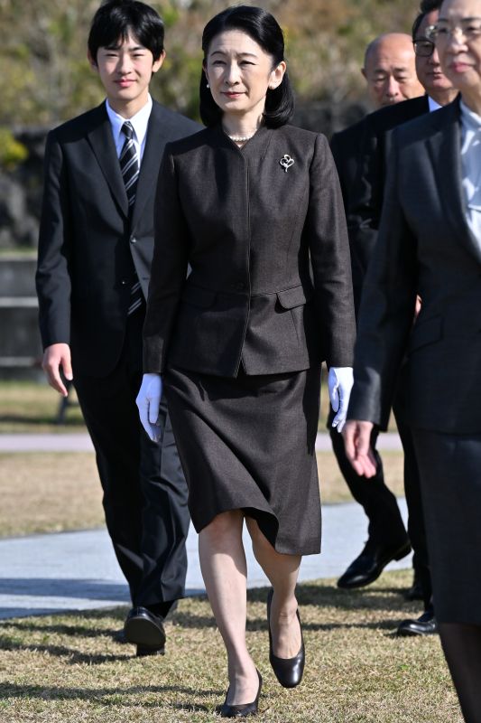 高速船を降りられた紀子さまは、ダークブラウンのスーツにシルバーのブローチというシックな装いで落ち着いた雰囲気を醸し出されつつ、両サイドの髪をねじってピンで留めることで耳を出し、若々しさも演出されていた。続いてタラップを降りた悠仁さまは、ネイビーのジャケットに同色と白のレジメンタルタイを合わせ爽やかな雰囲気に。おふたりとも改まった装いで島民から歓迎を受けられた。