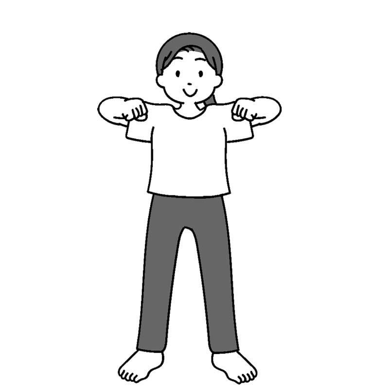 両こぶしを肩までスライドさせる(イラスト/藤井昌子)